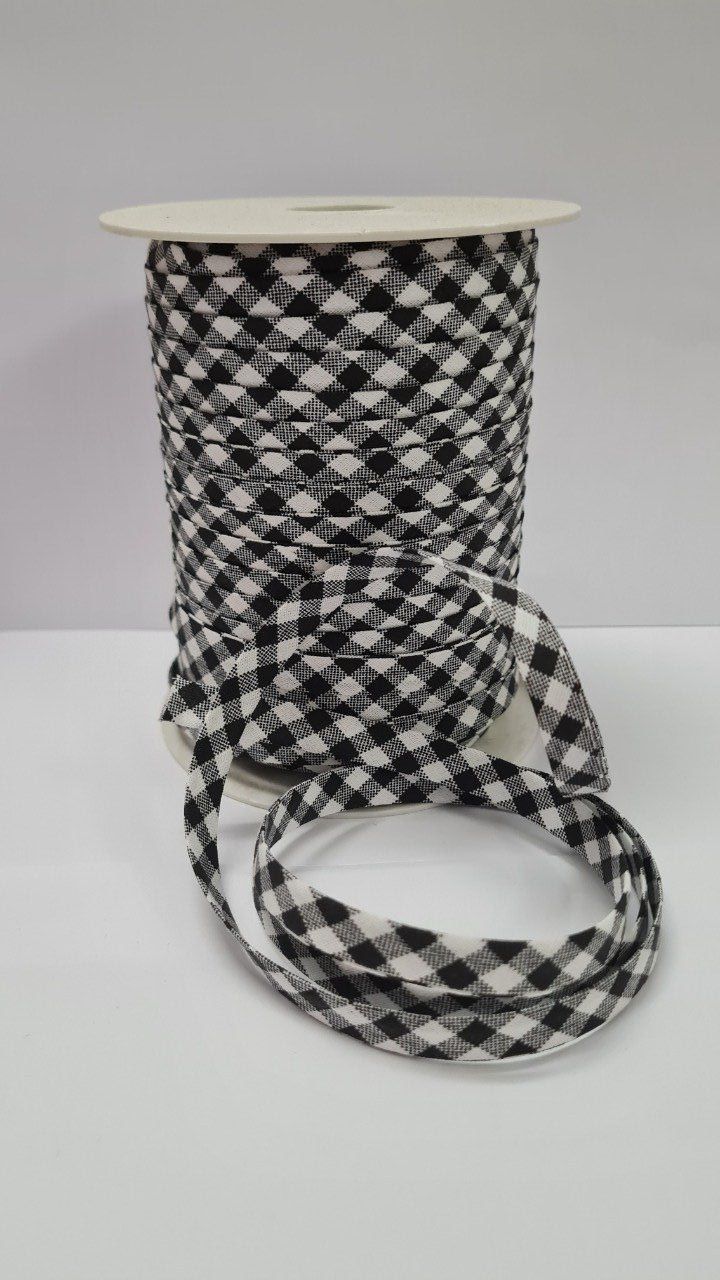 Biais coton vichy noir au mètre