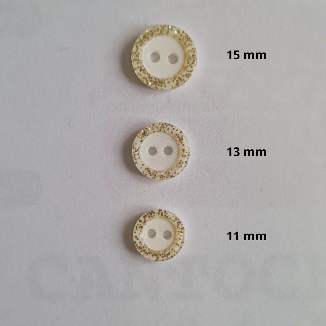Bouton pailleté blanc/ doré à la pièce 11 / 13 / 15 mm