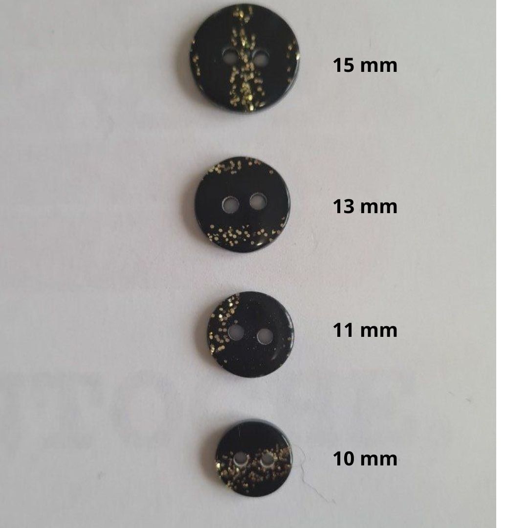 Bouton pailleté noir/doré à la pièce 10 / 11 / 13 / 15 mm