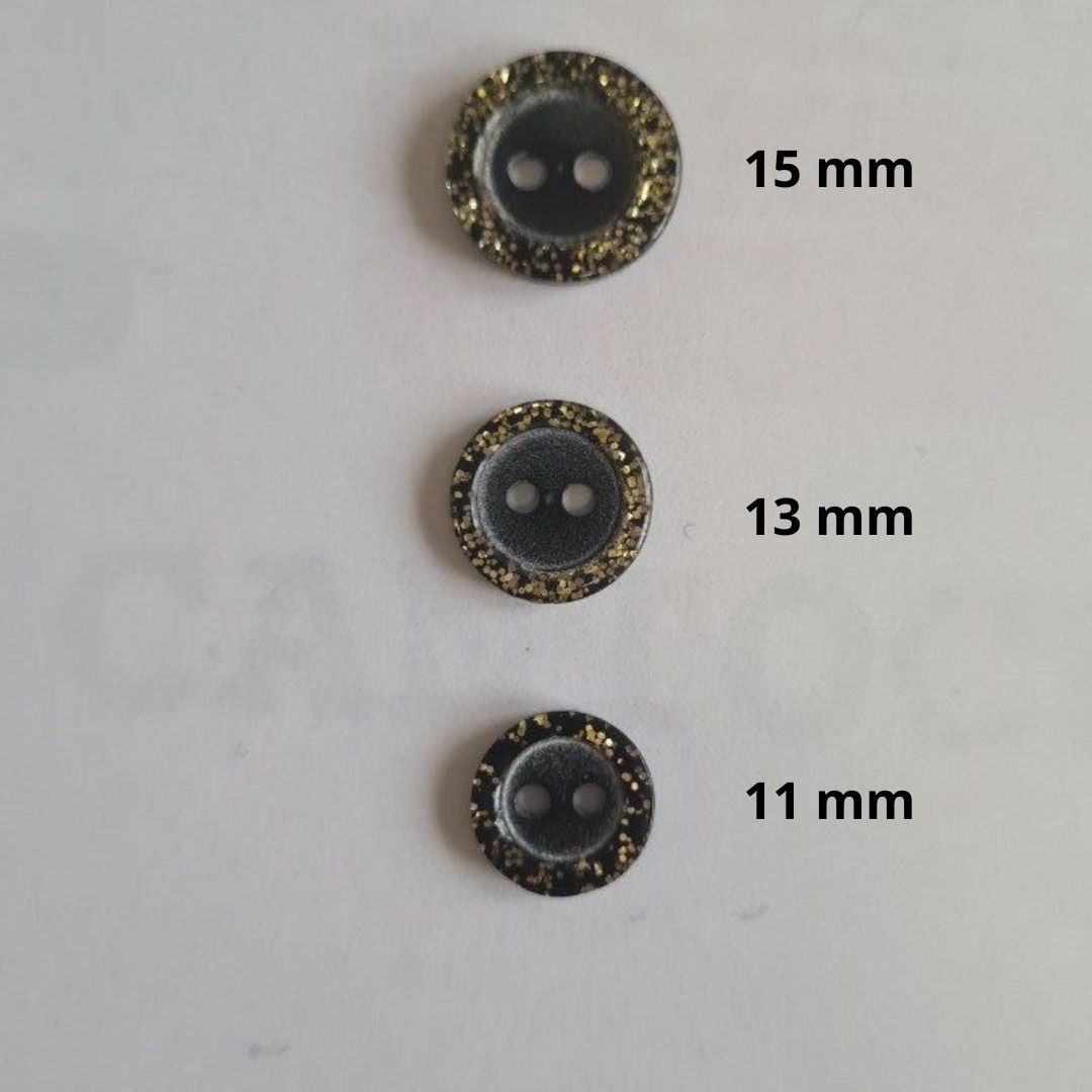 Bouton pailleté noir/doré à la pièce 11 / 13 / 15 mm