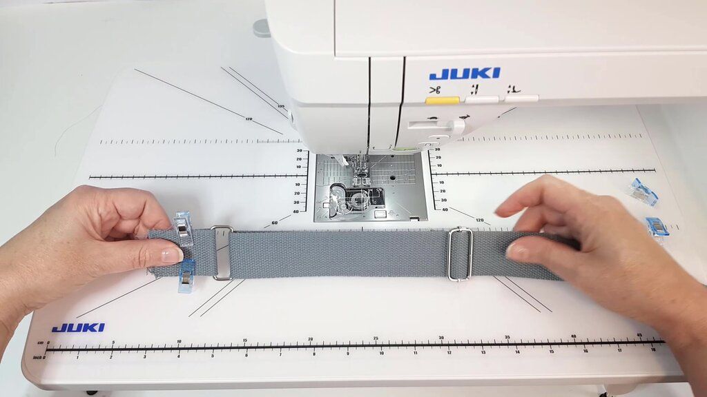 - Placez la sangle sur votre projet, en l'épinglant ou en la maintenant avec des clips.