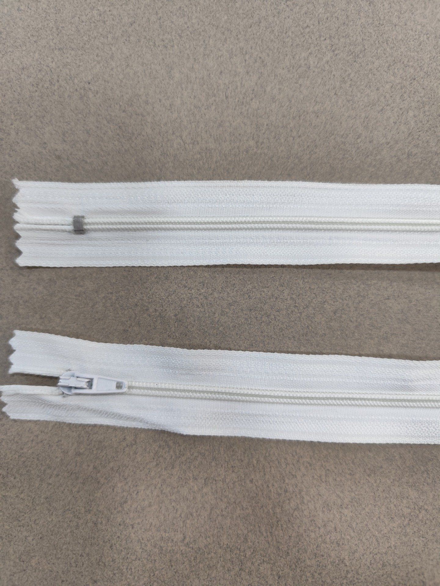 Fermeture éclair nylon blanche à la pièce 10 / 12 / 15 / 25 / 30 / 35 / 40 / 50 / 55 / 60 cm