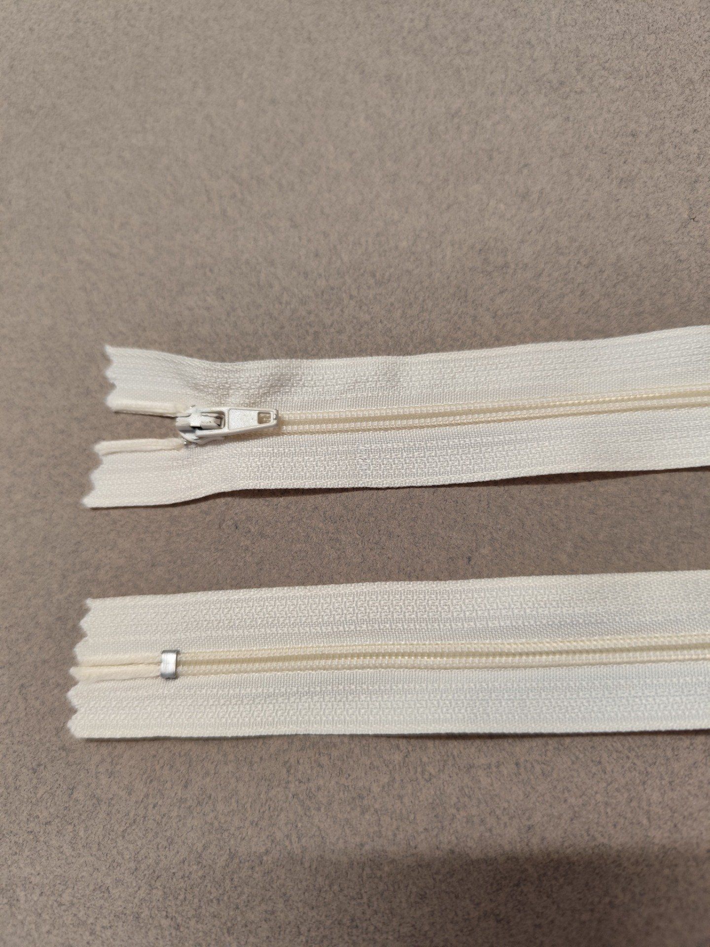 Fermeture éclair nylon écru à la pièce 8 / 10 / 12 / 20 / 22 / 35 / 40 cm