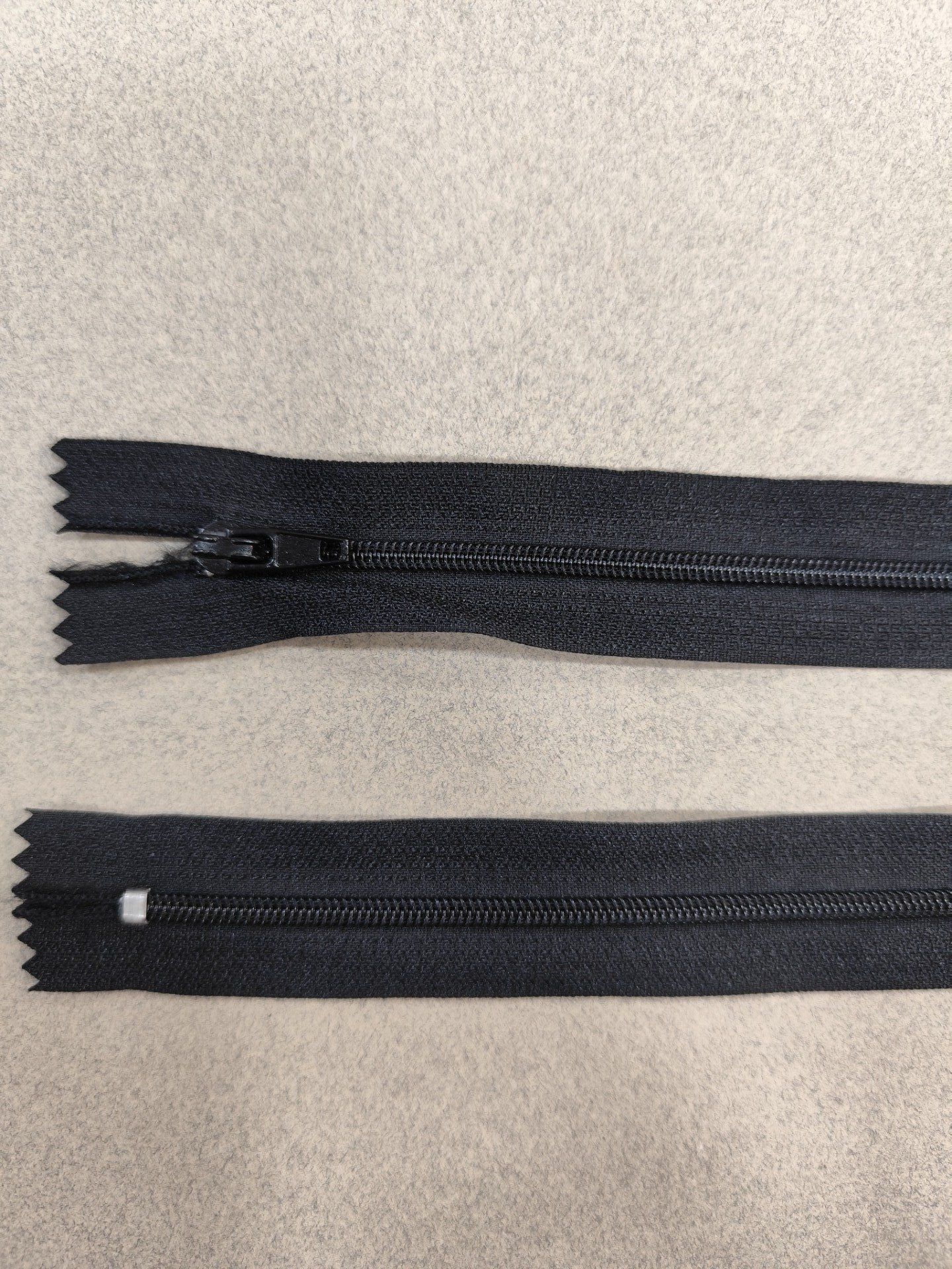 Fermeture éclair nylon noire à la pièce 8 / 10 / 12 / 15 / 30 / 35 / 40 / 50 / 55 / 60 cm