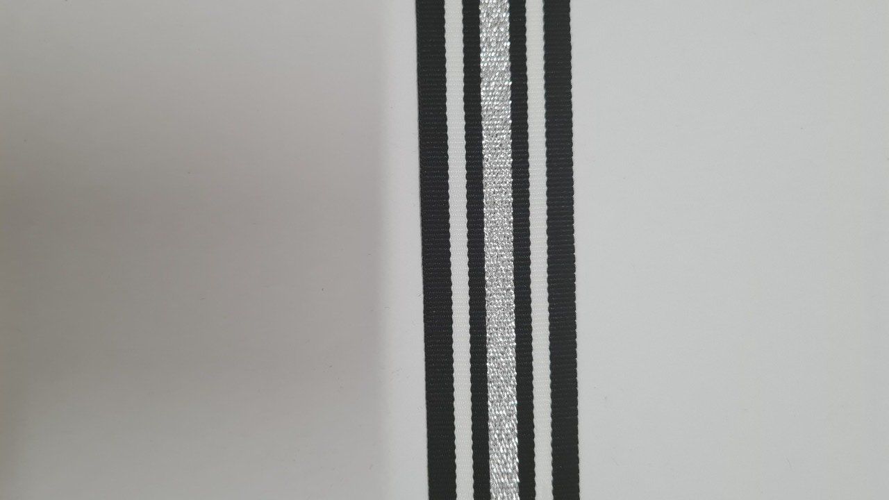 Gros grain rayé noir blanc argent 25mm au mètre