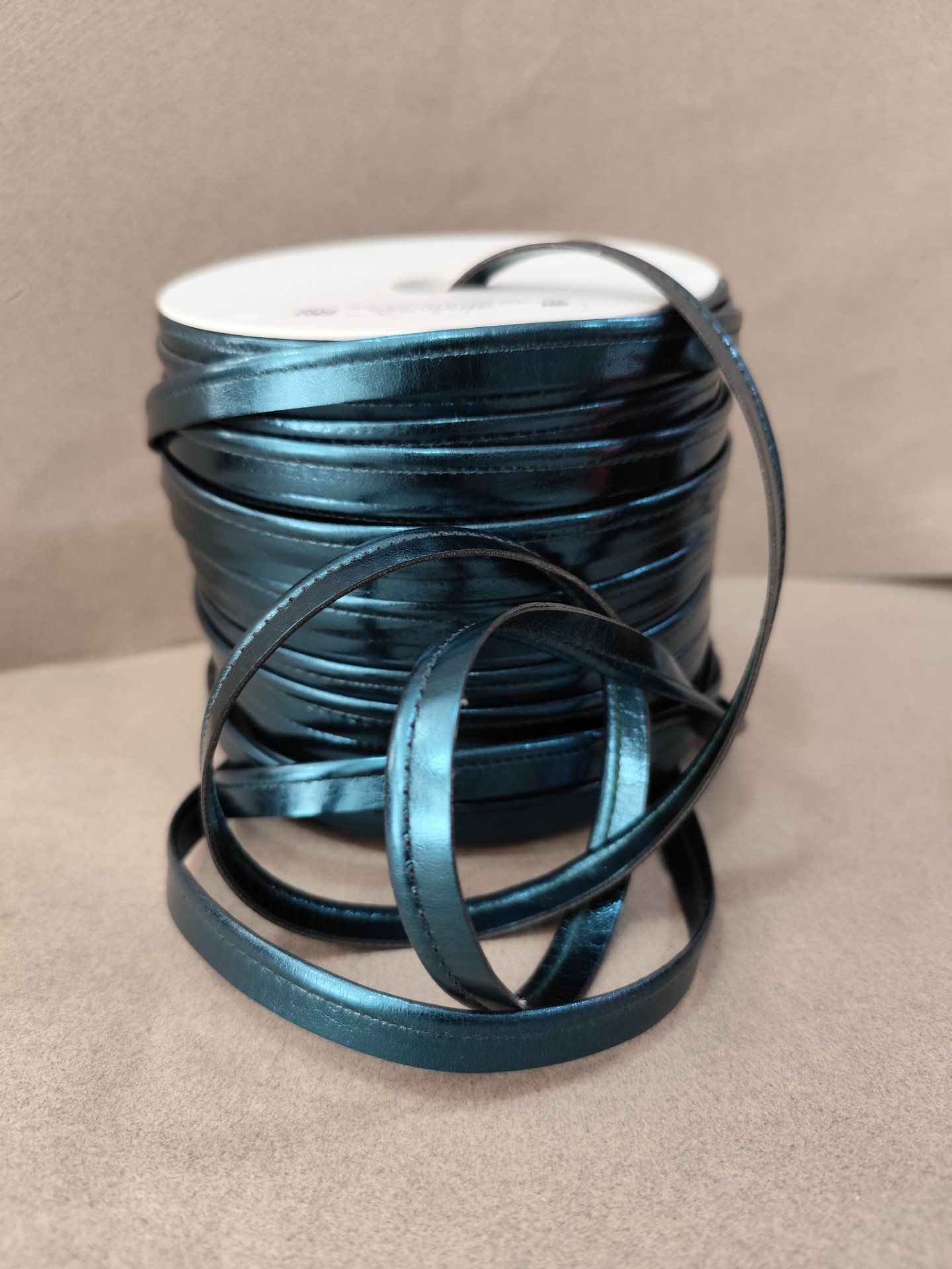 Passepoil imitation cuir lamé bleu canard au mètre