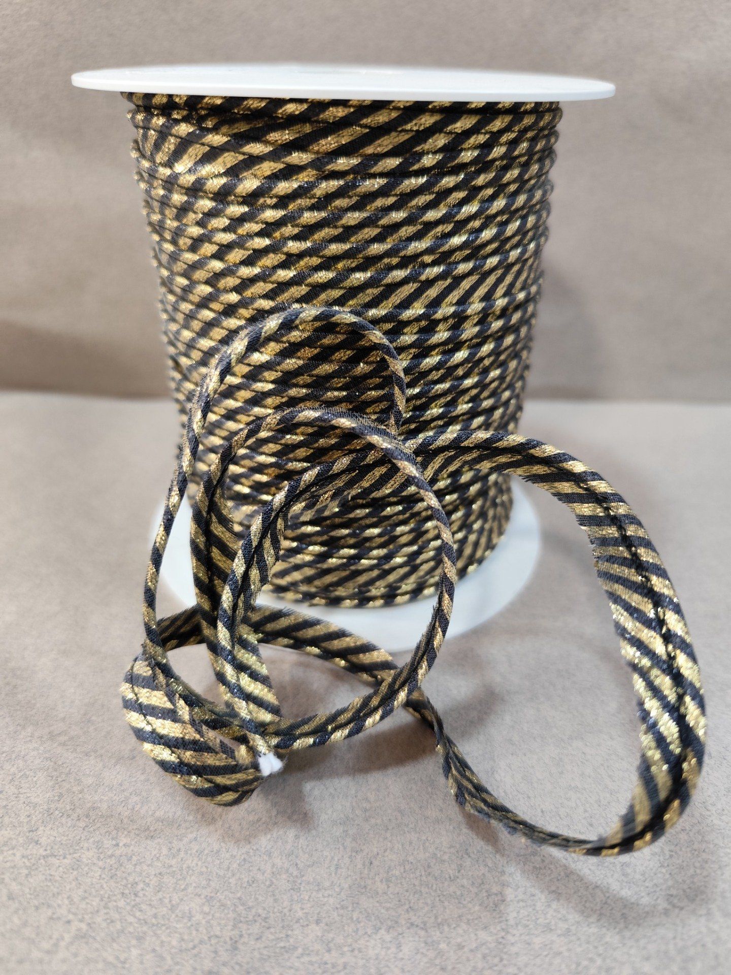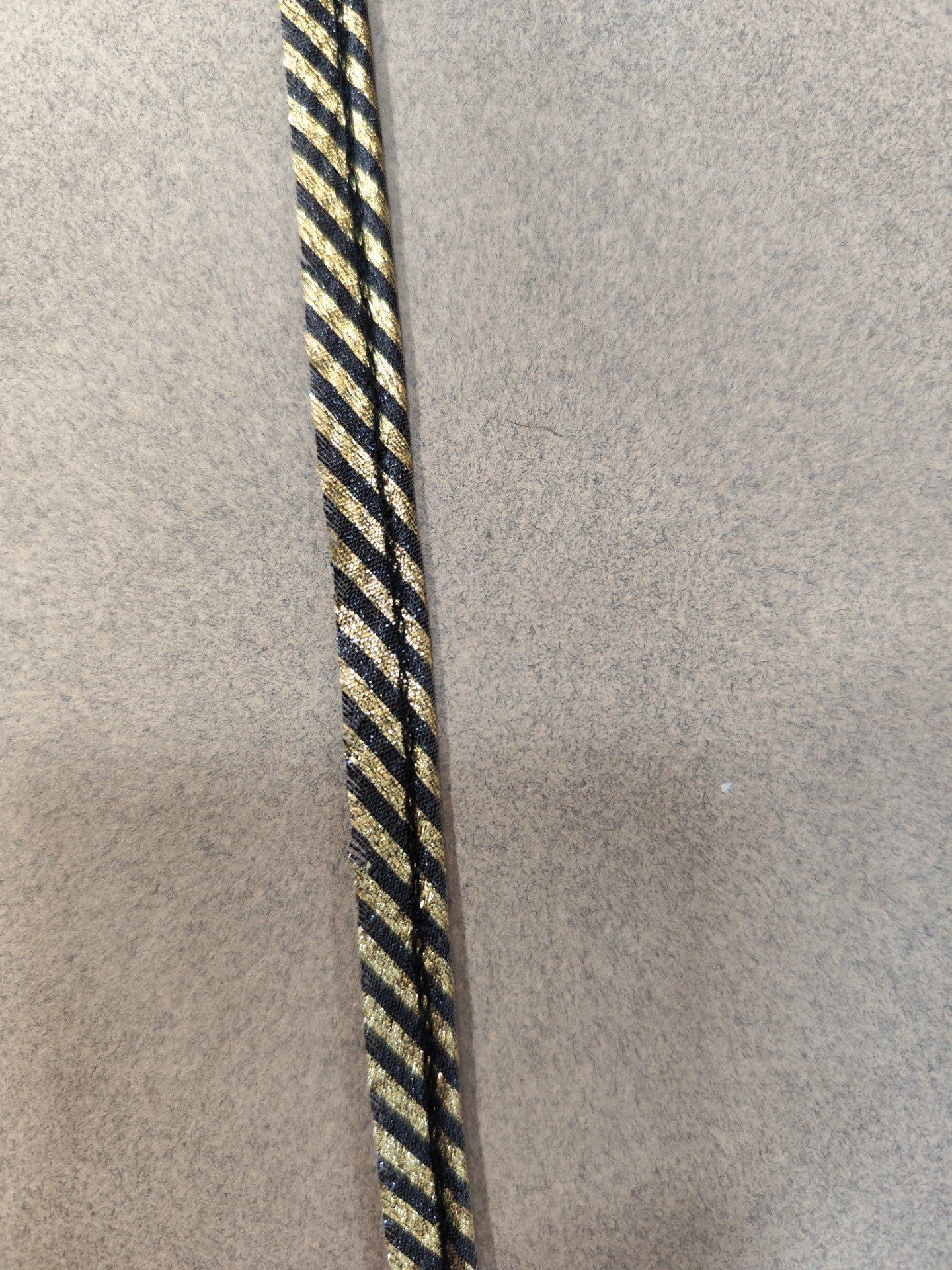 Le passepoil lurex est un cordon décoratif entouré d’un ruban tissé avec un fil métallisé (lurex). Il apporte une touche brillante et un effet haut de gamme aux finitions couture.