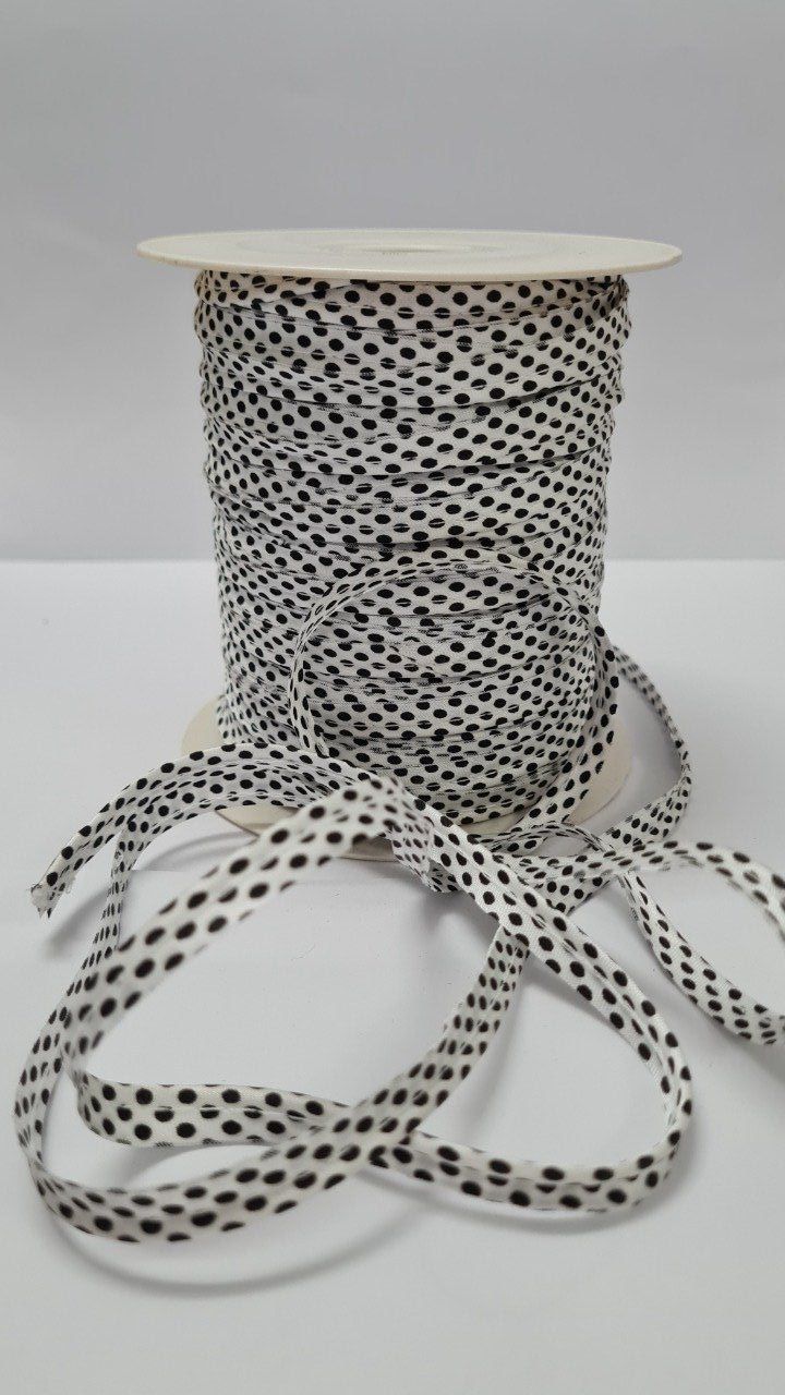 Passepoil satin blanc à pois noir au mètre