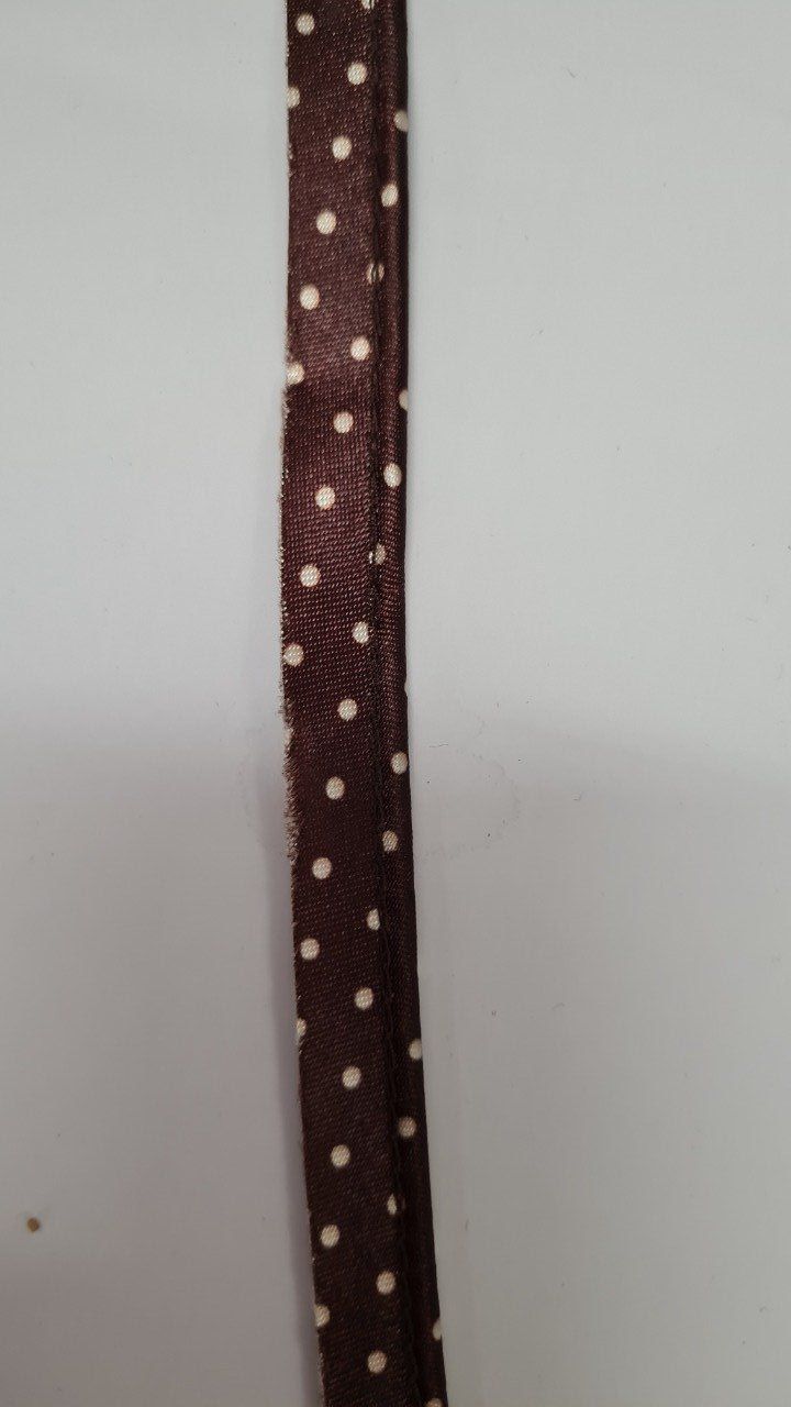 Passepoil satin chocolat à pois écru au mètre